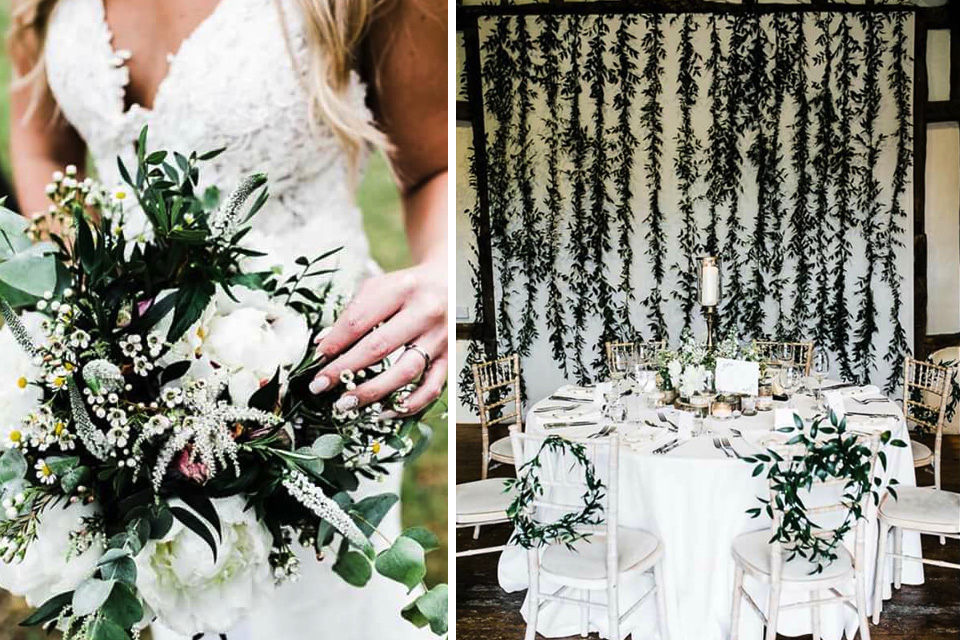 The simple, loose styling incorporating Devon’s love for peonies, gave a nod to boho chic, with the barn decked out in masses of greenery and flowers arranged in mismatched jars.